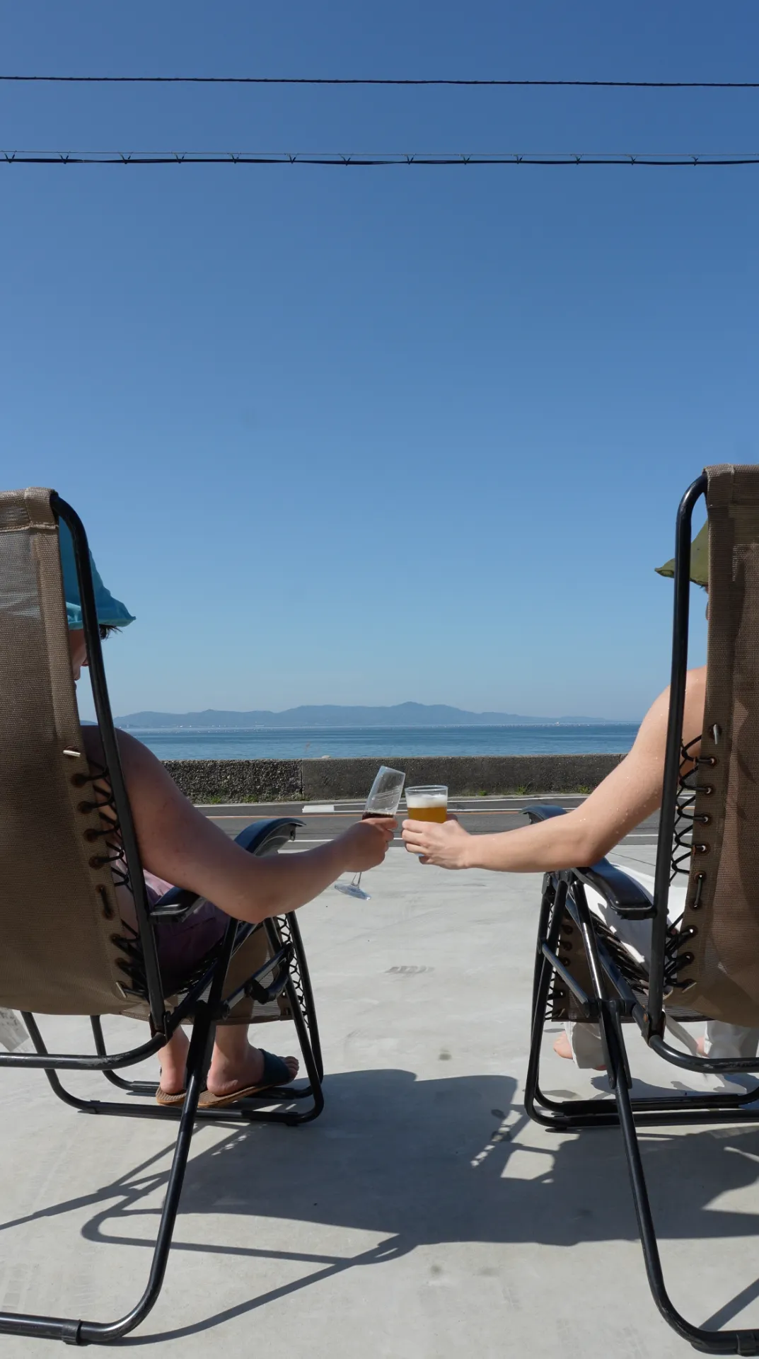海を前に乾杯!: 冷たい飲み物を片手に、目の前に広がる穏やかな海の絶景に向かって乾杯! 潮風を感じながら飲むビールやシャンパンは、言葉にできないほどの美味しさです。サウナの感動を共有する仲間と囲むこの時間は、一生忘れられない思い出となるでしょう。