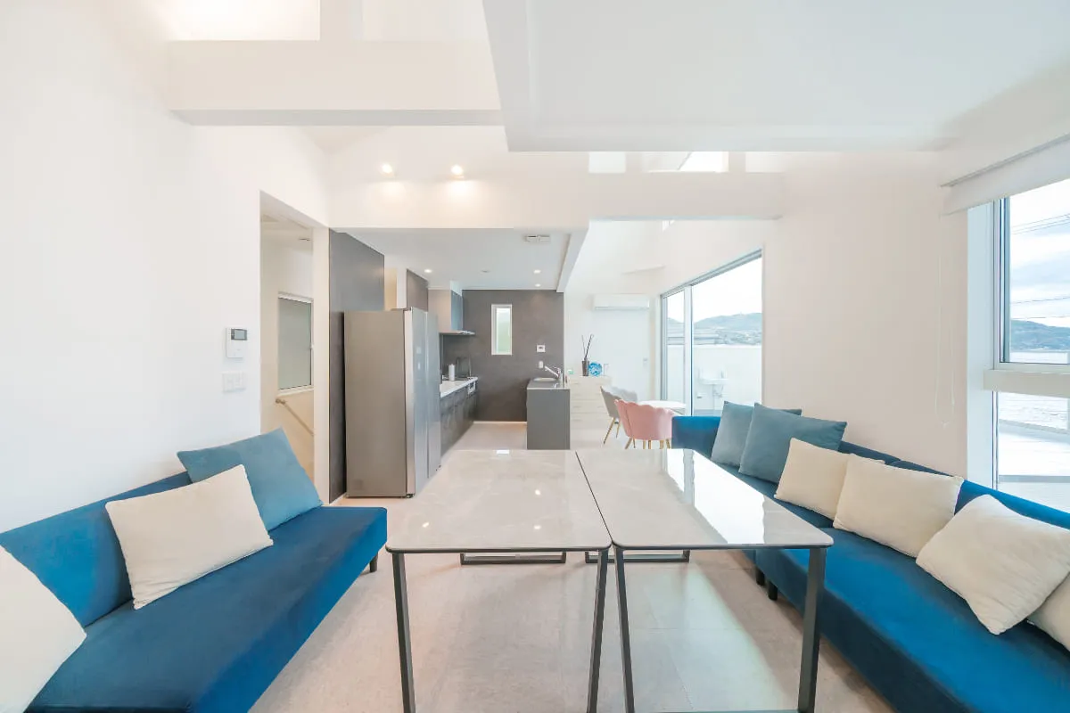 水平線まで見通せる広々としたオーシャンビューが印象的な空間をご提供しております。淡路島での貸切予約となりますので、大人数でのご利用に最適です。「友人と卒業旅行をしたい」「小さい子どもも連れていきたい」など、様々なニーズにお応えします。皆様で集まれるリビングや広々とした庭で行うBBQなど、大切な方との特別な時間をお過ごしいただけます。